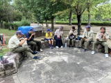 親子サイクリング近つ飛鳥博物館到着 ハイキング 後、展望台で昼食 サポートのボーイ隊 ![]()