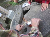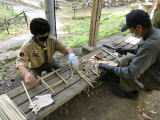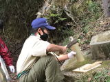 | 鉈で竹割り |