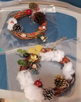 松ぼっくり どんぐり 小枝など自然の素材を使って、クリスマスリースを作りました。