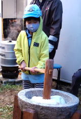 | もちつき大会では、もちつき、来年のたこあげ大会のたこを作り、模擬店で楽しんで、登山のアイゼン 装着を練習しました。保護者の皆様本当にご協力ありがとうございました。(隊長 上田) |