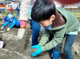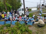 | 中村隊長のお話。 スカウト農園で北団委員さんにじゃがいもの植え方を学びます。 植えるぞー |