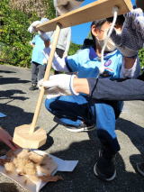 | 柏原3団キムス ビニール袋中の防災グッズを触って当てます |