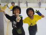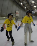 転んでも転んでも立ち上がって、氷と友達になっていました。動きが速すぎで
